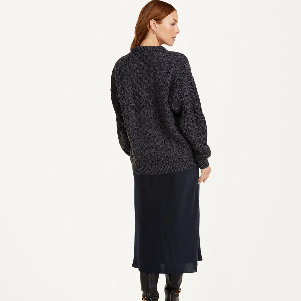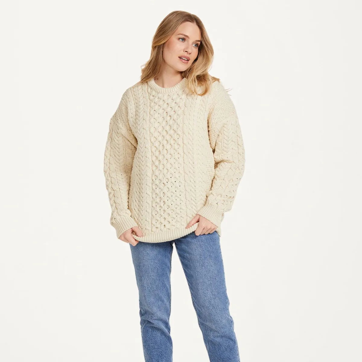 Women's Merino Crew Neck Aran Sweater Derby Gaelsong