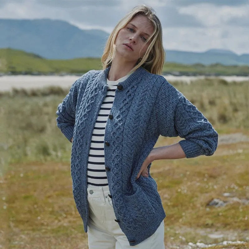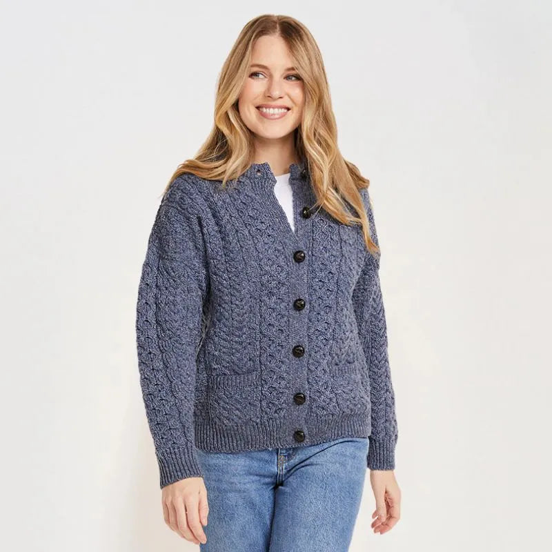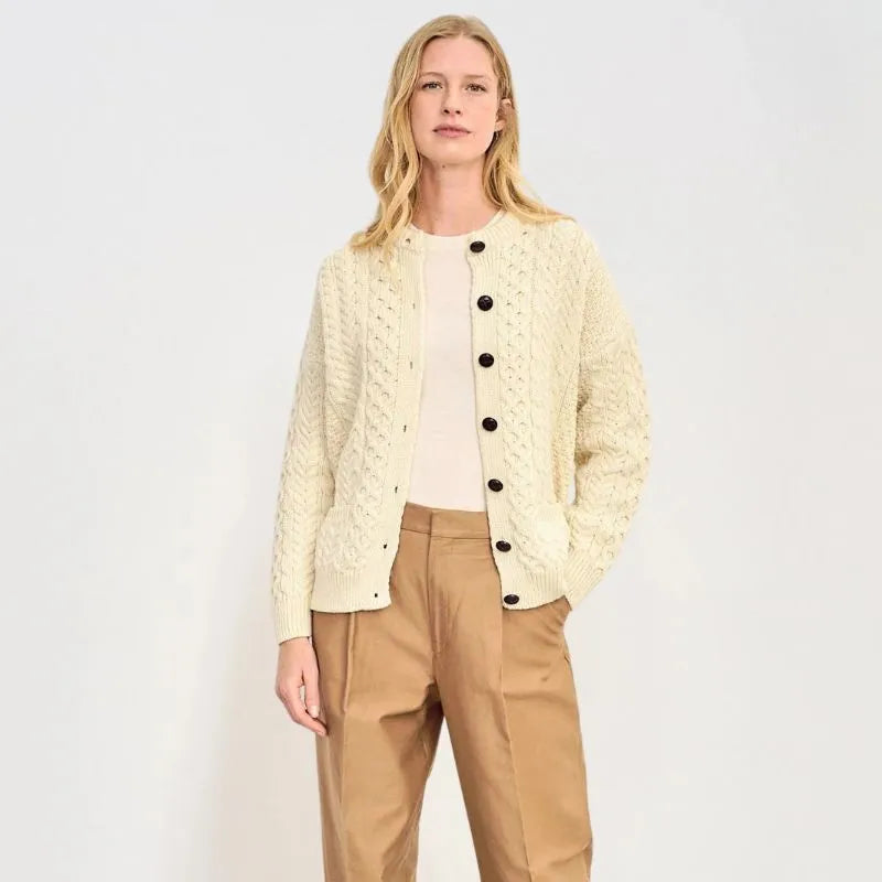 Women's Merino Button-Up Irish Cardigan