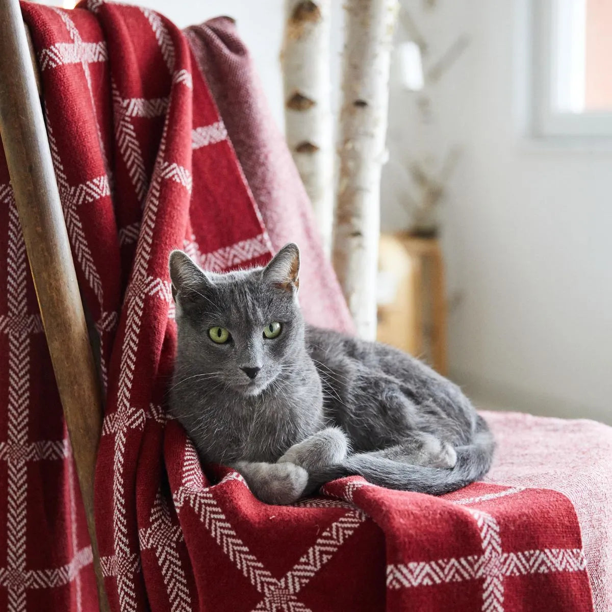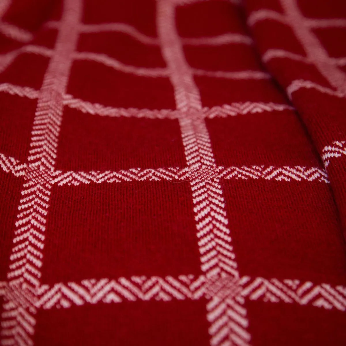 Add style and elegance to your living room with our Plaid Merino Wool Check Blanket in Rose. The color of this piece is the key point of it, being a beautiful red wine color, that complements the design. Along with the classy red, comes a plaid pattern knit with white herringbone accents, and a fringe end finish, for a plus of flair. The blanket is not only stylish, but also soft and warm, being made of Pure Merino Wool for your comfort and coziness. You can take this blanket on a picnic with you, but make sure to hand wash it and dry it flat, in order for it to last you as long as possible and keep its shape. Measurements are 75 inches(190cm) long and 57 inches(145cm) wide.
