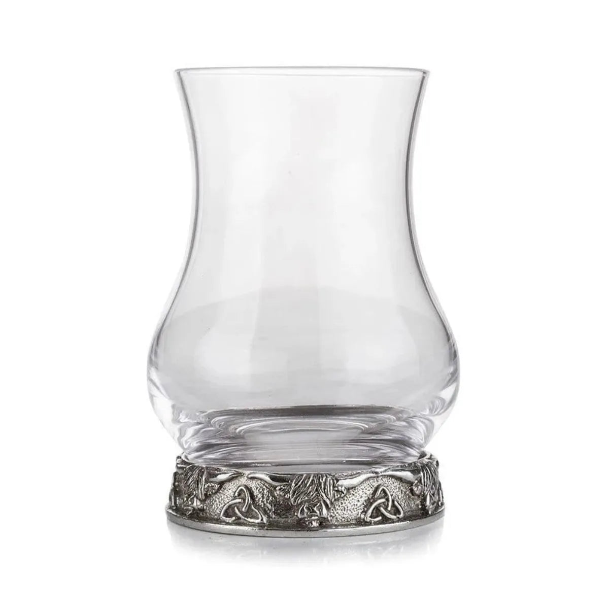 Indulge in a unique whisky experience with our Pewter Highland Whisky Glass! Made with solid glass and a pewter base, this piece offers longevity. It beautifully combines iconic Scottish symbols - the Highland cow and Celtic knotwork or thistle, weaving a tale of Scottish tradition and artistry. Renowned for their resilience and strength, these elements represent the spirit of the Scottish Highlands, embodying qualities of endurance and perseverance. Beyond its captivating design, its meticulously shaped contours enhance the whisky's essence. Measuring 3.93x2.36 x 2.36 inches and offering a capacity of 6.08 fl oz, it's ideal for cherished tasting moments.