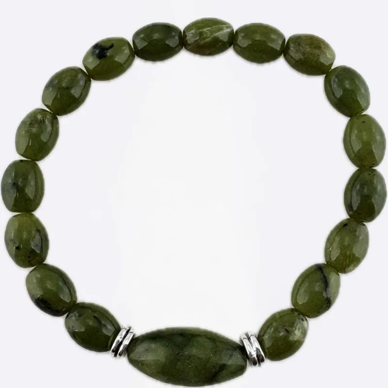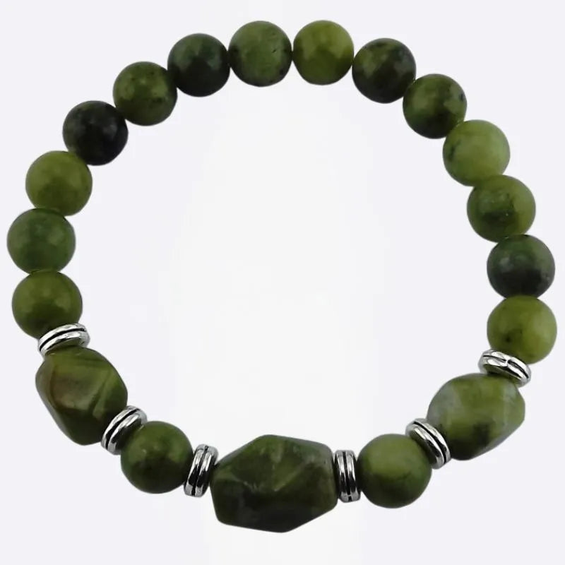 Our Rare Connemara Marble Beads Stretch Bracelet feels like something you'd pick up on a quiet afternoon wandering through a little shop in Ireland, unexpected, real, and full of charm. Every bead is made from true Connemara marble, carved from stone that's been forming in the hills of western Ireland for hundreds of millions of years. You'll see greens that range from soft moss to deep forest, swirls of grey, touches of cream. Each bead is different: mossy greens, flecks of grey, soft swirls, no two exactly alike. To complete the look, our  Shamrock Connemara Marble Drop Earrings with Marcasite are a perfect match. The beads come in a variety of shapes you can choose from, some are round, some square, others a bit more oval or slightly imperfect, and that's exactly what gives it its quiet beauty. It also makes a wonderful gift, something that doesn't feel mass-produced or overdone, just honest and lovely. Placed on a cord, it stretches easily to fit all wrists, and it's light enough to wear every day without thinking twice.