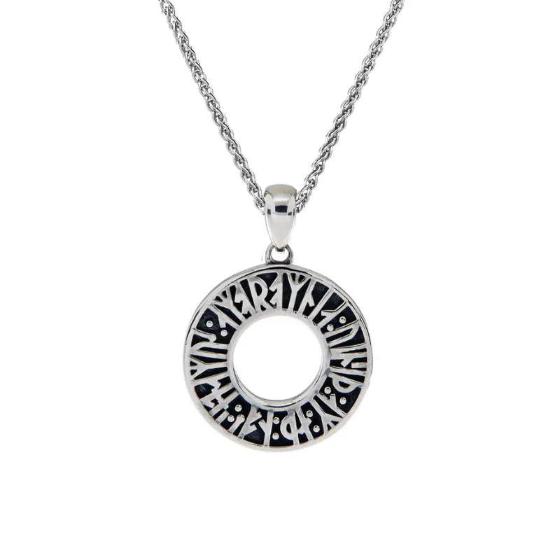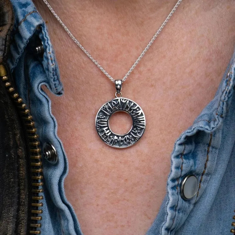 Step into the romantic echoes of the Age of Vikings with our "I Remember You" Runic Pendant! Meticulously crafted from 100% high quality sterling silver with an oxidized finish, this pendant is rust-resistant, durable and has a pristine shine. This pendant pays homage to the era when runic carvings conveyed short yet profound messages. Inspired by a note discovered in Norway, the pendant translates to: "Remember me, I remember you/Love me, I love you." This timeless expression of love resonates across the circular pendant, measuring 1" in diameter. The pendant comes with an 18" chain so you can wear this piece as a symbol of enduring love!