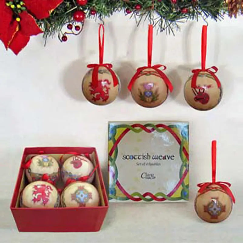 Authentic set of 4 baubles designed with Scotland's emblems