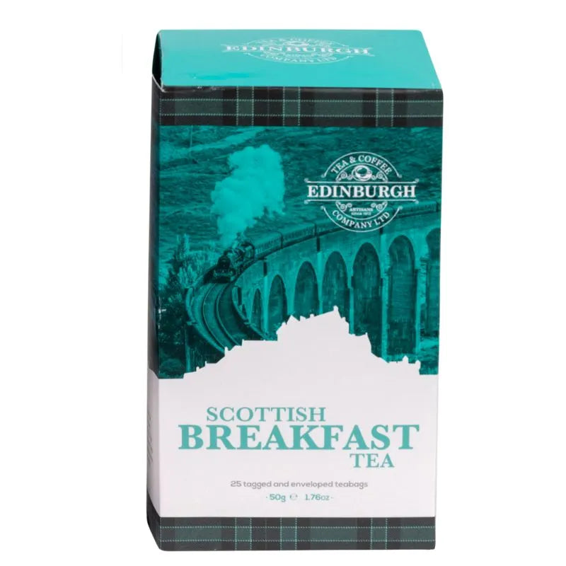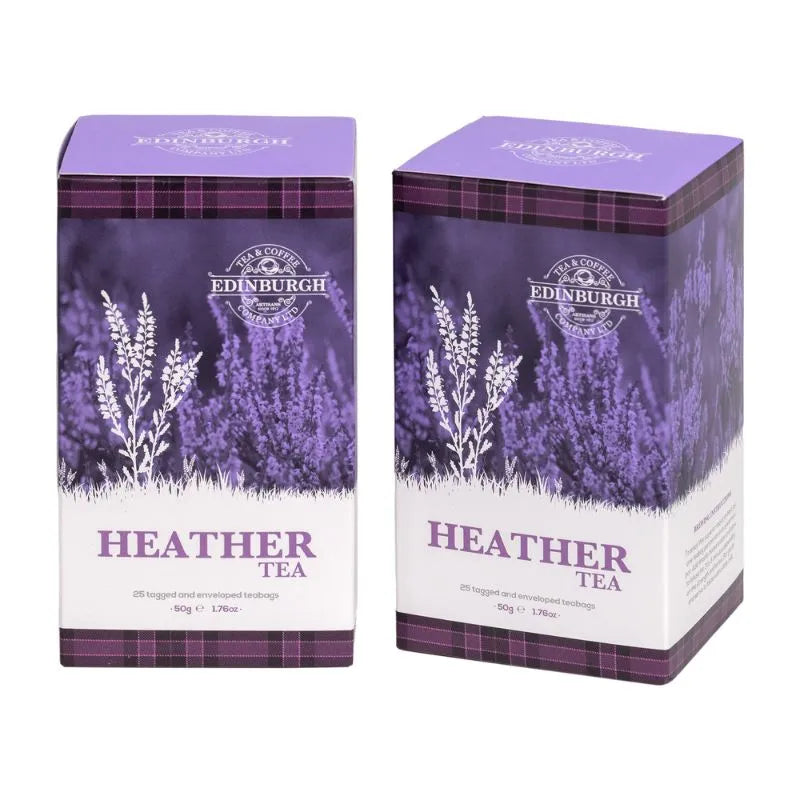 Bring a little taste of the Highlands to your teacup with our Scottish Heather Flower Teabag Tea - a charming blend of tradition, flavor, and Scottish spirit. This aromatic black tea is infused with delicate heather blossoms, giving it a subtle floral note that perfectly complements the tea's rich body. Black tea is loved for its energizing qualities, making it the ideal pick-me-up whether you're starting your morning or taking a relaxing afternoon break. Enjoy it plain for a robust cup or add a splash of milk for a smoother, comforting brew. Each box contains 25 individually tagged and enveloped tea bags, totaling 1.76 ounces of pure delight - enough to keep you refreshed through many cozy teatimes. The tea is packed in a beautiful tartan-themed cardboard box adorned with the Edinburgh Tea & Coffee Company's logo, ensuring freshness and adding a touch of Scottish elegance to your kitchen. You can choose from a single box of Heather Tea, a set of two boxes, or a duo featuring Heather and Scottish Breakfast Tea - two distinctive blends to share or savor yourself. Looking for more Celtic charm? Explore our Celtic Kitchen and Glassware Collection for matching mugs, teapots, and more - perfect for creating your very own Scottish-inspired tea ritual.