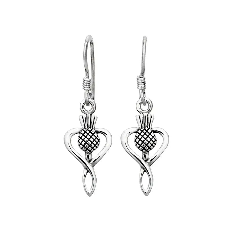 Thistle Heart Drop Earrings in Sterling Silver