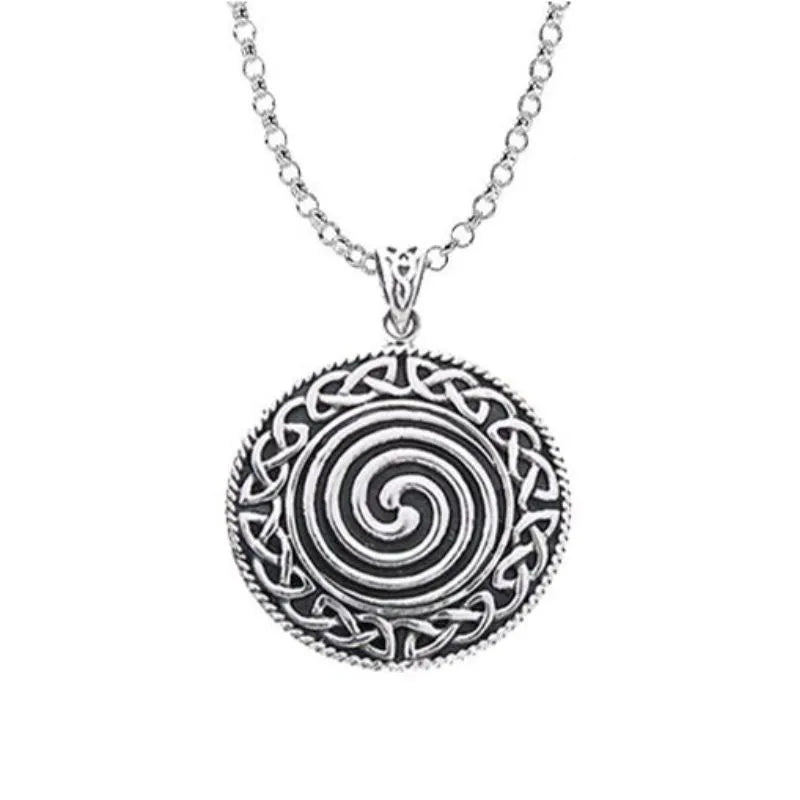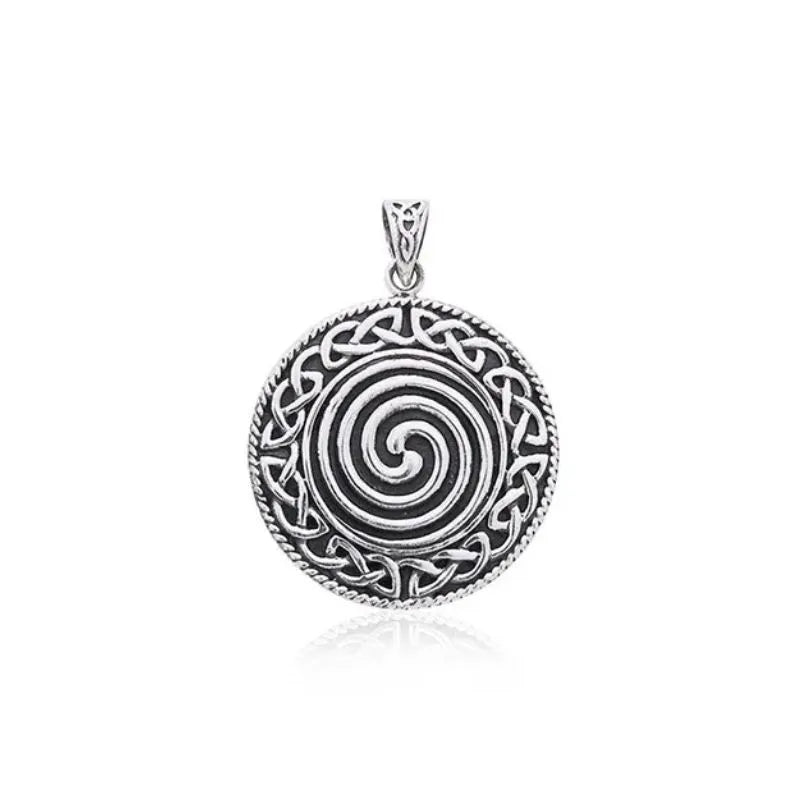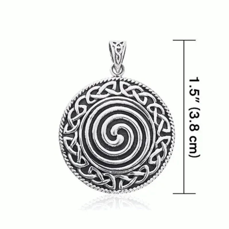 Are you seeking the perfect accessory that combines timeless elegance and spiritual significance? Choose our Large Celtic Knot Silver Spiral Pendant. Handcrafted of 100% sterling silver, this pendant is rust and tarnish resistant, ensuring to last. Standing at 1.5" tall and accompanied by an 18" chain, this necklace comes in a gift box and seamlessly enhances your attire. Delve into its intricate Celtic spiral design, a reflection of personal and spiritual growth, while the Celtic knotwork symbolizes the eternal interconnectedness of life's journey. Elevate your style with this gracefully crafted, meaningful statement piece, or gift it to your loved ones!