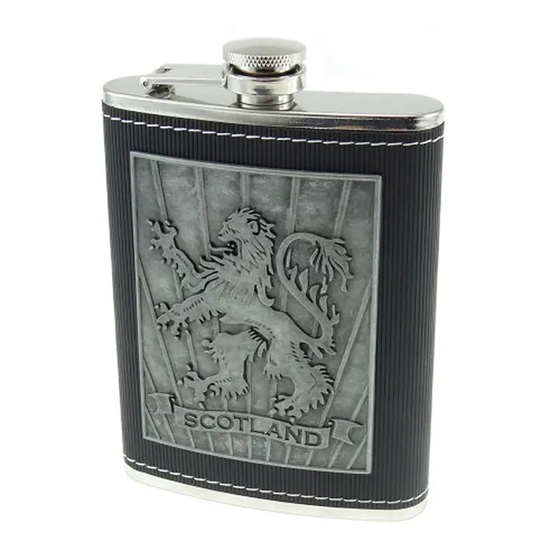 D68651 Steel Whiskey Flask with Scottish Rampant Lion Design Gaelsong