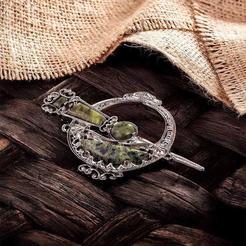 Our exquisite Connemara Marble Tara Hill Brooch is a one-of-a-kind treasure you'll be happy to have in your accessory collection. Renowned as "Ireland's gemstone," these exquisite marbles range in stunning green tones, and are sourced exclusively from the Connemara region of Ireland. Each Irish brooch is unique, as no two pieces of marble are ever the same. The brooch's base metal is plated with rhodium, ensuring it is rust and tarnish-resistant, boasting a timeless shine. With its vintage allure, it's perfect for adorning your scarf, blazer, or any garment on any occasion and aesthetic. It comes beautifully packaged in a box, making it an ideal gift for a dear woman.
