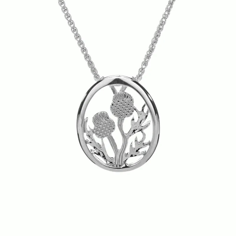Elevate your style with our exquisite Scottish Thistle Flower Pendant. Meticulously crafted from premium 100% sterling silver, it embodies both beauty and durability, ensuring it remains a timeless piece in your collection. The intricate design showcases the iconic Scottish Thistle, renowned for its symbolism of resilience and strength, adding a touch of heritage and character to your ensemble. With dimensions of 1" in width, 1.25" in height, and an 18-inch chain, this Scottish pendant strikes the perfect balance between subtlety and impact, making it a versatile accessory for any occasion. Wear it proudly as a testament to your strength and grace.