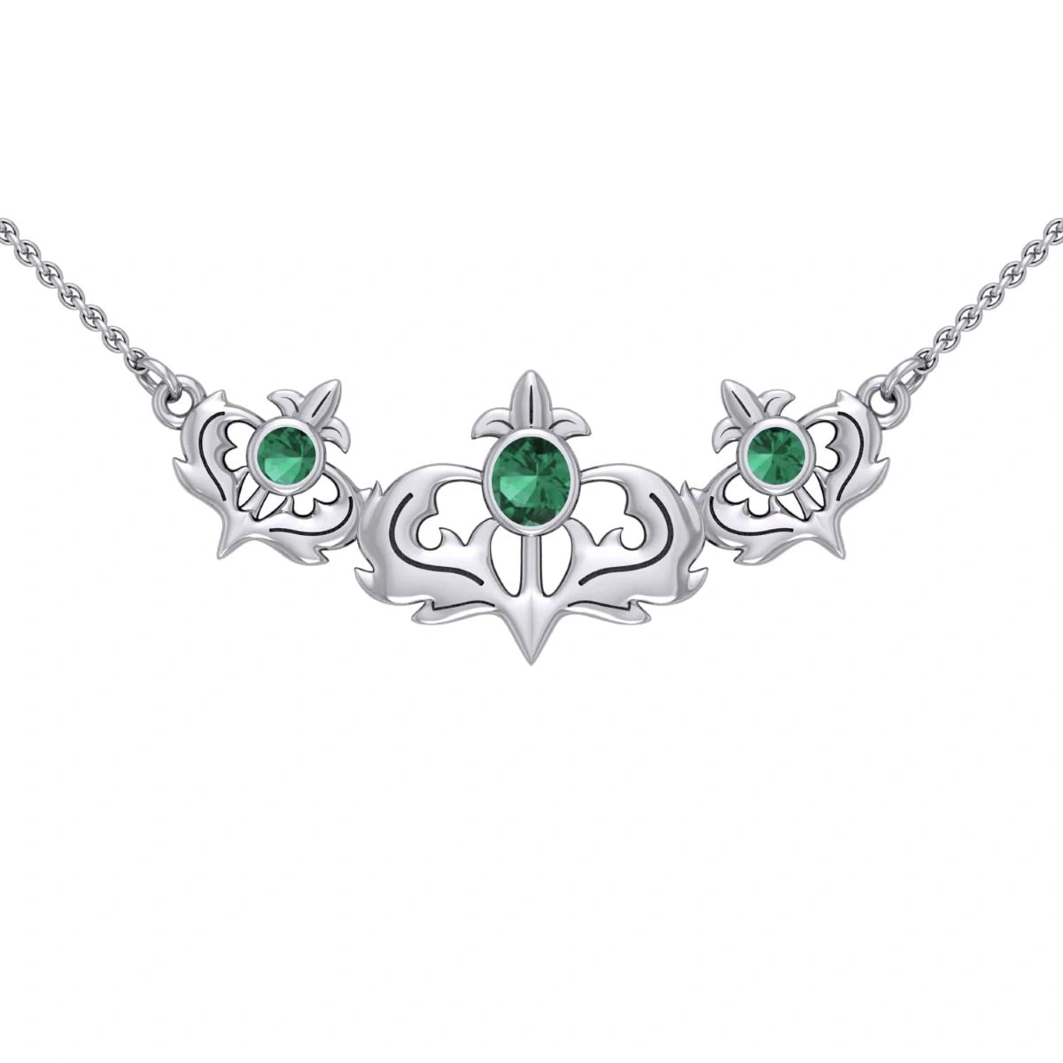 If you're looking for an accessory with meaning, our Shimmering Sterling Silver Scottish Thistle Necklace is exactly what you need! This stunning Scottish necklace is a true celebration of tradition and meaning, featuring the iconic thistle, a symbol of bravery and resilience deeply rooted in Scottish heritage. Did you know the Scottish defeated the Vikings with the help of these small, thorny plants? The Scottish thistle became a national symbol, giving the motto "Nemo me impune lacessit", which is translated as "What dares meddle with me?". Crafted from tarnish-proof sterling silver, the pendant is delicately sized at 0.75" in width, making it a perfect choice for those who appreciate the fine things in life. This piece will gracefully sit around your neck, drawing attention to the intricate details of the thistle. The combination of Scottish tradition, spiritual gemstones, and high-quality craftsmanship ensures that this piece will be cherished for years to comes - and since it's presented in a gift box you can offer it to your loved ones right away.