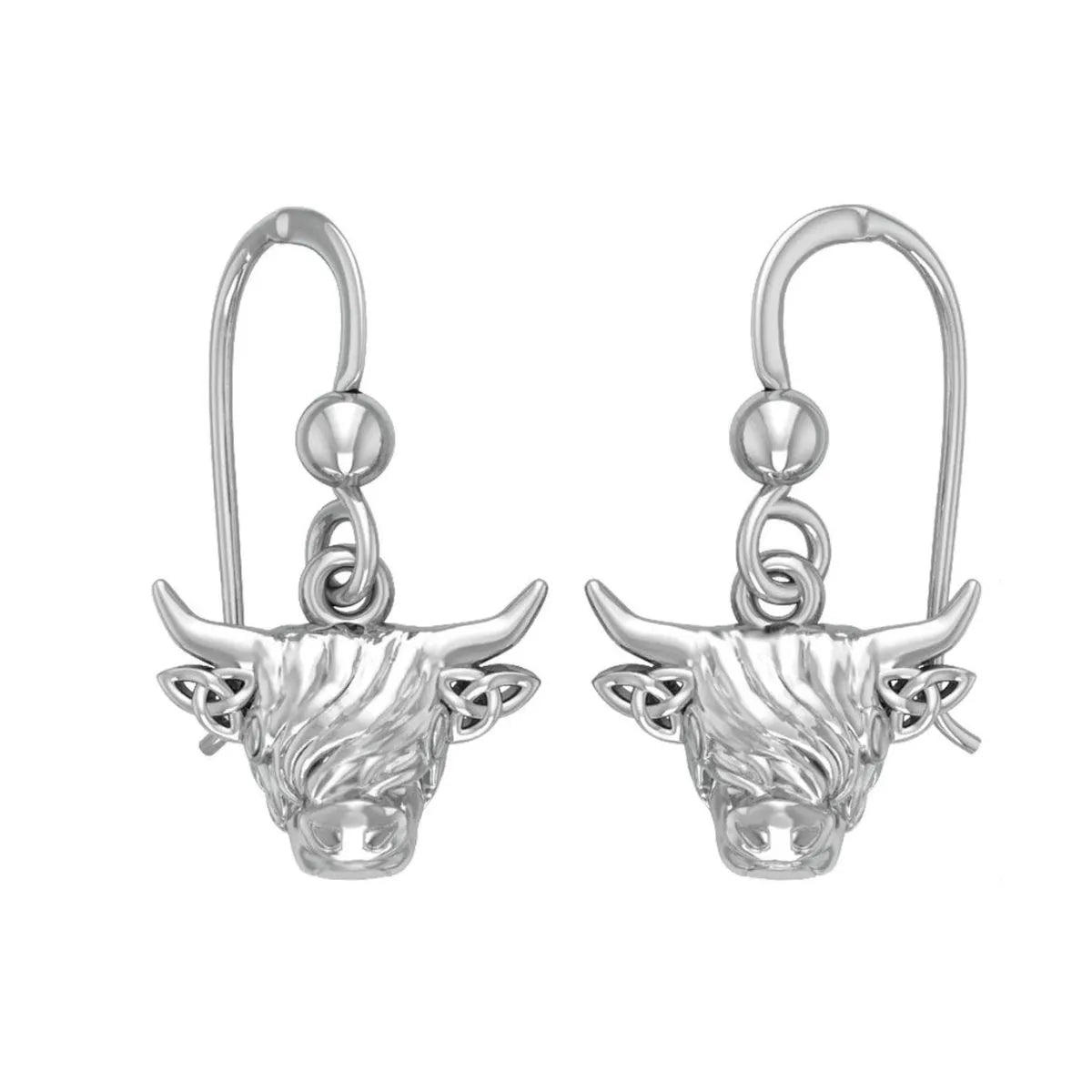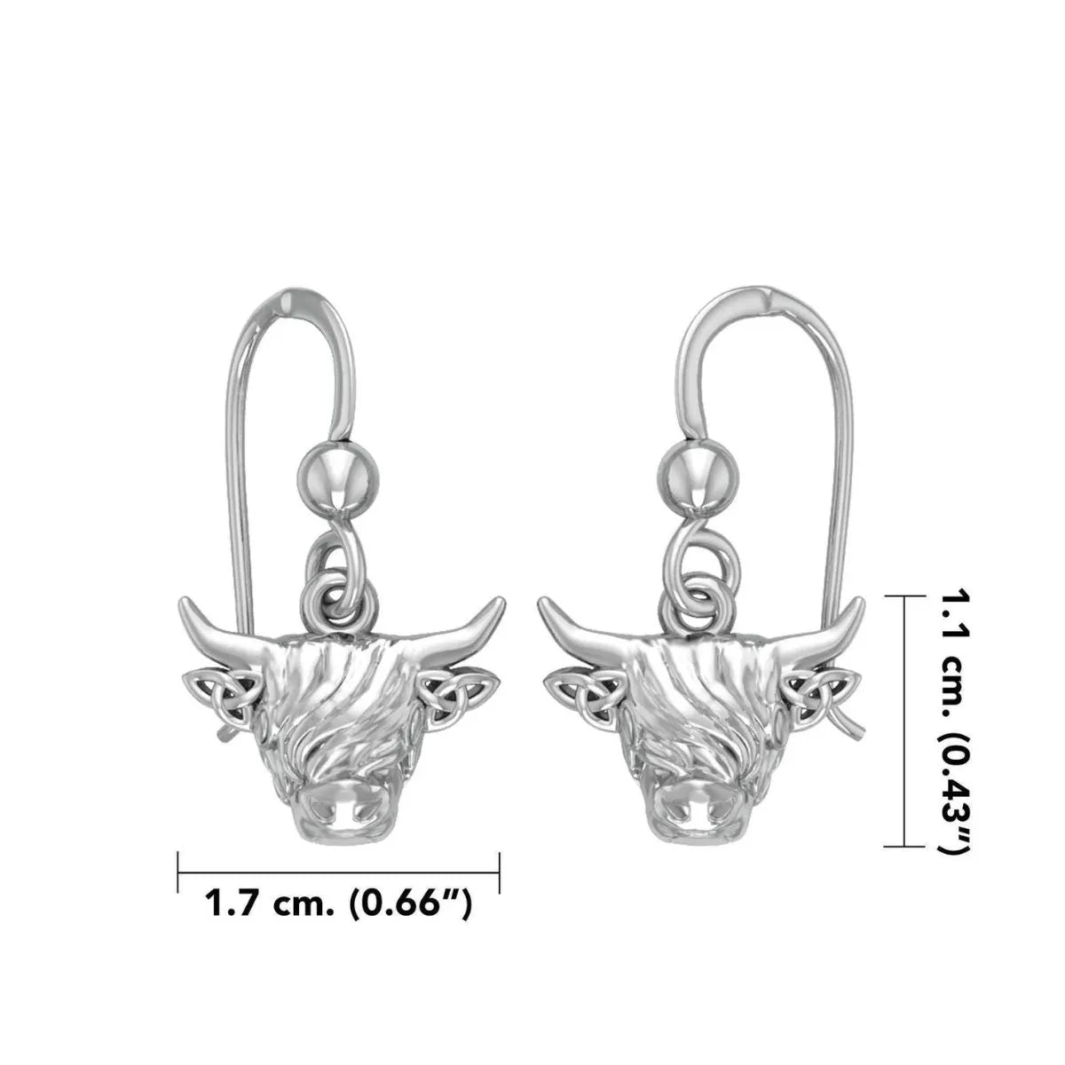 Searching for a unique pair of earrings to add a whimsical touch to your looks? Say hello to our Trinity Highland Cow Drop Earrings! The earrings beautifully merge the adorable Highland cow, a symbol of Scotland's pastoral farms, with exquisite Celtic trinity knots, a representation of interconnectedness. Made of 100% sterling silver, these Scottish earrings promise long-lasting shine and resistance - if properly cared for, they can become a unique family heirloom for generations to come. These drop earrings are sized at 0.66'' in width & 0.43'' in height without the hook, ideal for everyday wear and special occasions - it couldn't get any better than that!