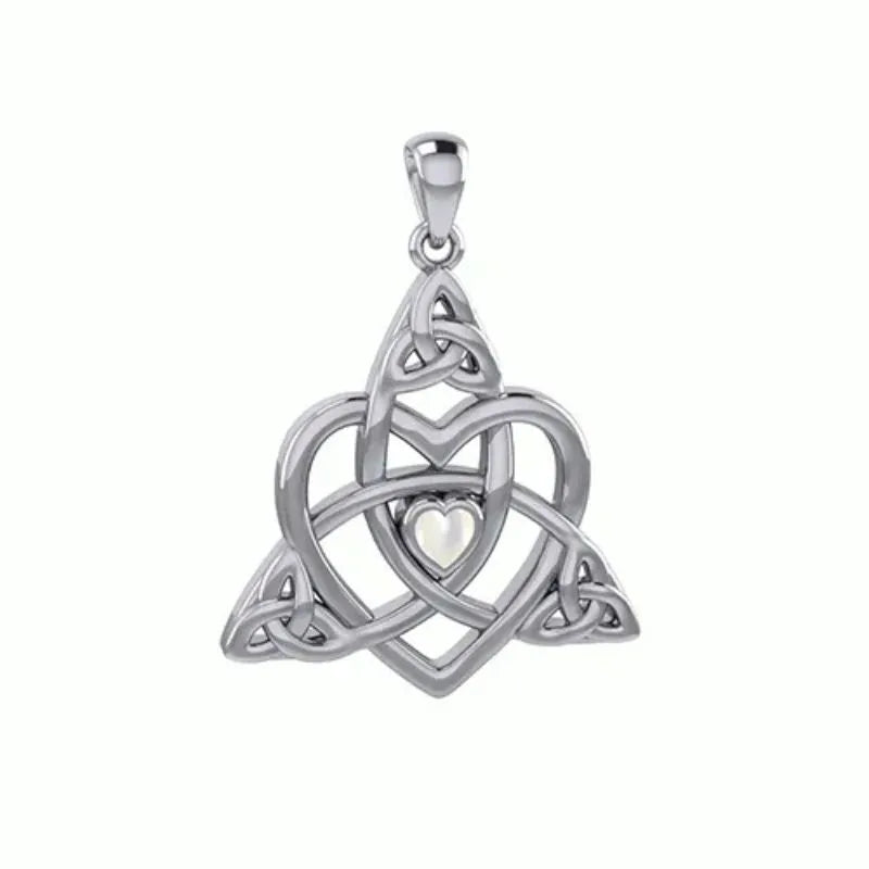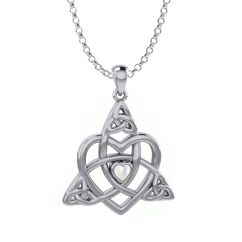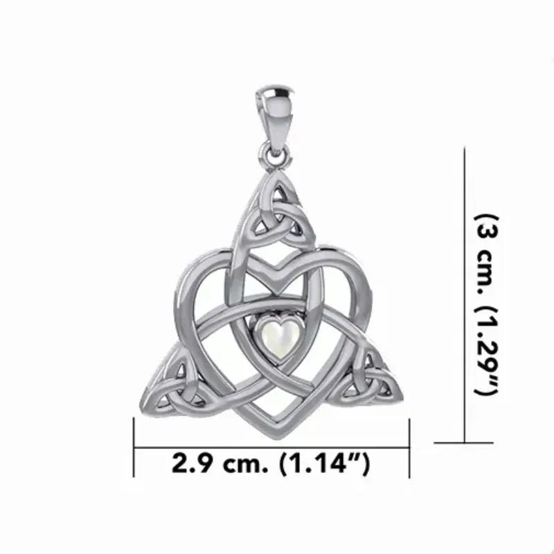 Our Trinity Knot Celtic Heart Pendant is meticulously crafted from 925 sterling silver - an exquisite material that ensures lasting brilliance, is resistant to rust and tarnishing, destined to become a cherished family heirloom. Inspired by Ireland's rich cultural heritage, the pendant features Trinity Knots intertwining with a heart symbol, representing your enduring faith and love. A captivating heart-shaped gemstone adorns the center of this pendant, adding a radiant sparkle. Sized 1.14" x 1.29", it's perfectly proportioned for everyday wear or special occasions. Paired with its 18" silver chain, it's ready to grace any neckline. Gift this silver knot pendant to a loved one or wear it as a steadfast expression of your faith and culture.