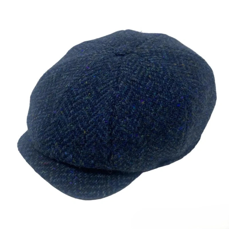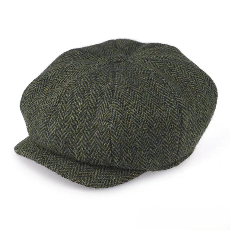 Step back in time with our Handwoven Tweed Shelby Cap! Inspired by the Irish newspaper boys of yesteryear and the iconic Shelby family from Peaky Blinders, this classic newsboy cap adds a touch of vintage charm to any outfit. Handwoven in Donegal, Ireland, by skilled artisans, ensuring you receive a genuine piece of heritage. Designed with eight stitched tweed panels that create a signature volume and a button on top, this cap captures the essence of classic newsboy style. The short, curved brim adds a touch of sophistication, making it perfect for elevating your look Made from high-quality woollen tweed, this cap offers exceptional warmth and breathability while being naturally stain and crease resistant--perfect for everyday wear. The wool's moisture-wicking properties keep you dry and comfortable, no matter the weather. Plus, it's eco-friendly, making it a smart choice for the environmentally conscious. Its quilted interior lining adds an extra layer of comfort and keeps your head dry throughout the day. With its unique patterns, including traditional herringbone and vibrant Salt & Pepper designs, you can choose a style that resonates with you. The herringbone pattern symbolizes success, reflecting a rich history of elegance. Whether you're dressing up for a special occasion or looking to add personality to your everyday look, this Shelby-inspired cap is an essential accessory that effortlessly blends style and tradition!Â
