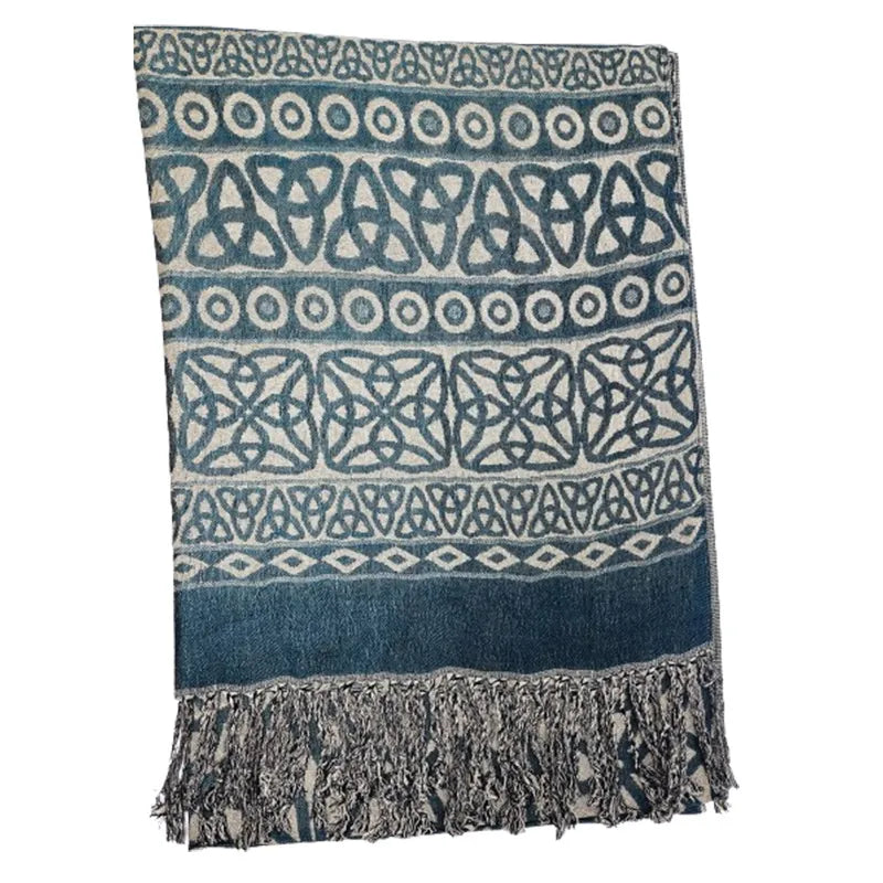 Inisheer Trinity Knot Fringed Scarf- Teal