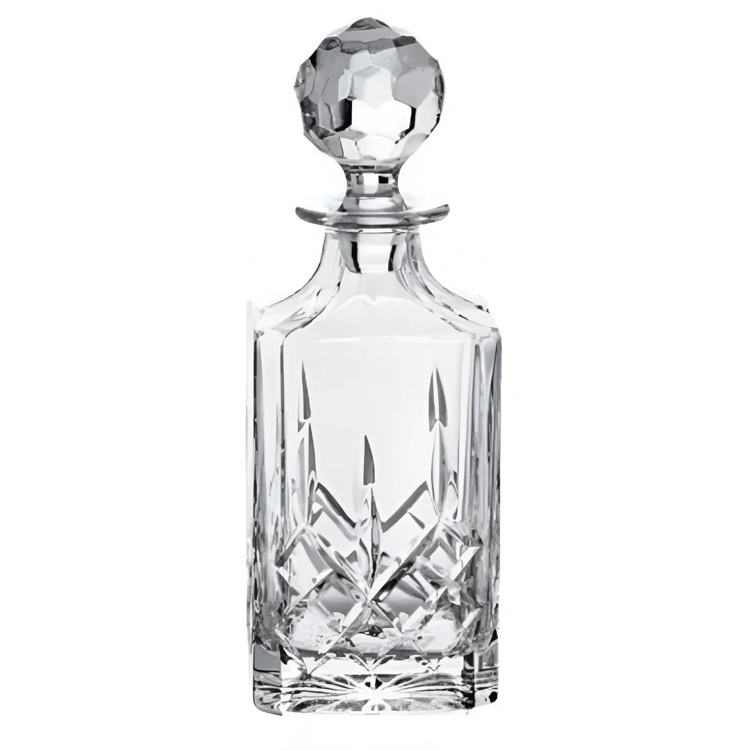 Our Irish Whiskey Decanter Tray Gift Set will charm any whiskey lover! Whether a sweet treat to yourself or a gift for a wedding, anniversary, or just to show them your appreciation, this set is specially designed to become a beloved heirloom. It includes a lidded 100% crystal decanter and 4 whiskey glasses, on a skillfully cut square tray with handles. The decanter and glasses are masterfully shaped to enhance the taste of your preferred whiskey. To maintain this set, we recommend hand washing only. The decanter and glasses have a stunning matching design, with thorny patterns and intricate cuts that resemble the breathtaking, dramatic Irish cliffs and sacred mountains. It's like a small-scale piece of Ireland's landscape in your bar! The glasses measure a practical 3.54 x 2.95'' & with a capacity 8.45 fl oz, the decanter is 9.44'' tall, with a volume of 21.97 fl oz, while the tray measures 15.35 x 10.23''. Crafted in Galway, Ireland, this set is a testament to the age-old Irish whiskey tradition. Why not check out our Men's Irish Whiskey Gift Set as well for a more complete barware collection?