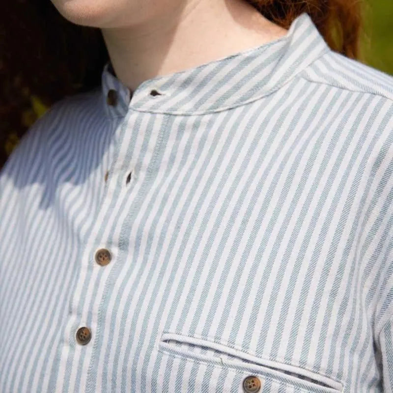 Traditional Women's Irish Grandad Shirt - Green Stripe