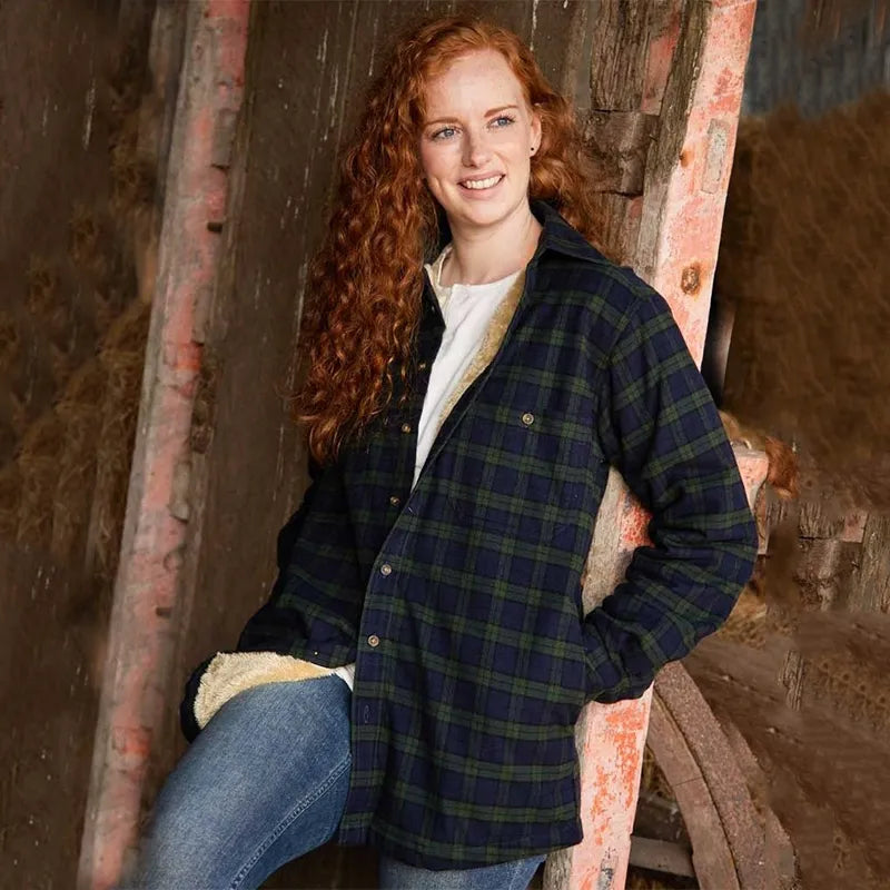 Women's Fleece-Lined Scottish Flannel Shirt - Blackwatch