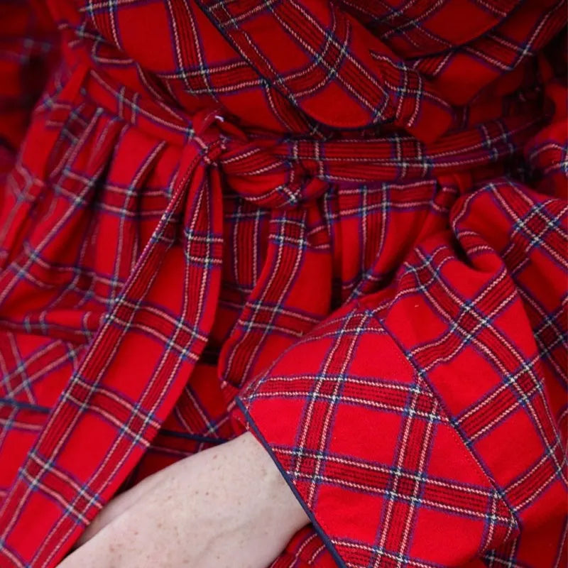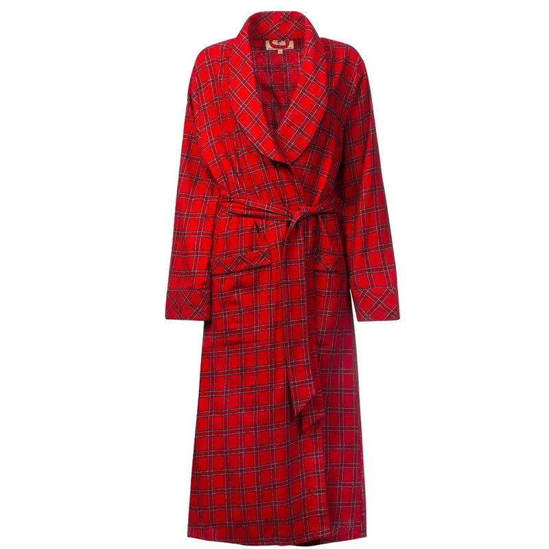 Following a traditional design, our Women's Irish Cotton Flannel Robe- Royal Stewart Tartan Design will bring you a piece of Ireland to your wardrobe. Made of 100% Cotton, this robe is comfortable, snug, and durable. Due to its heat insulation, the robe will keep you warm on even the coldest of days. The plaid pattern brings out the red color and makes it pop. Featuring matching a tie belt and large pockets for carrying any item, the night robe combines style and functionality. Representing the essence of comfort, tap into a new kind of coziness with our Irish Night Robe.