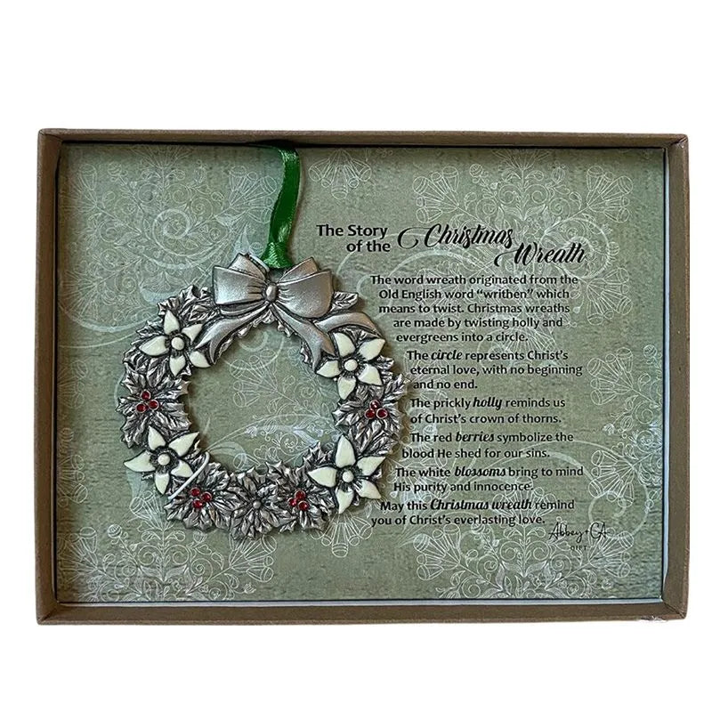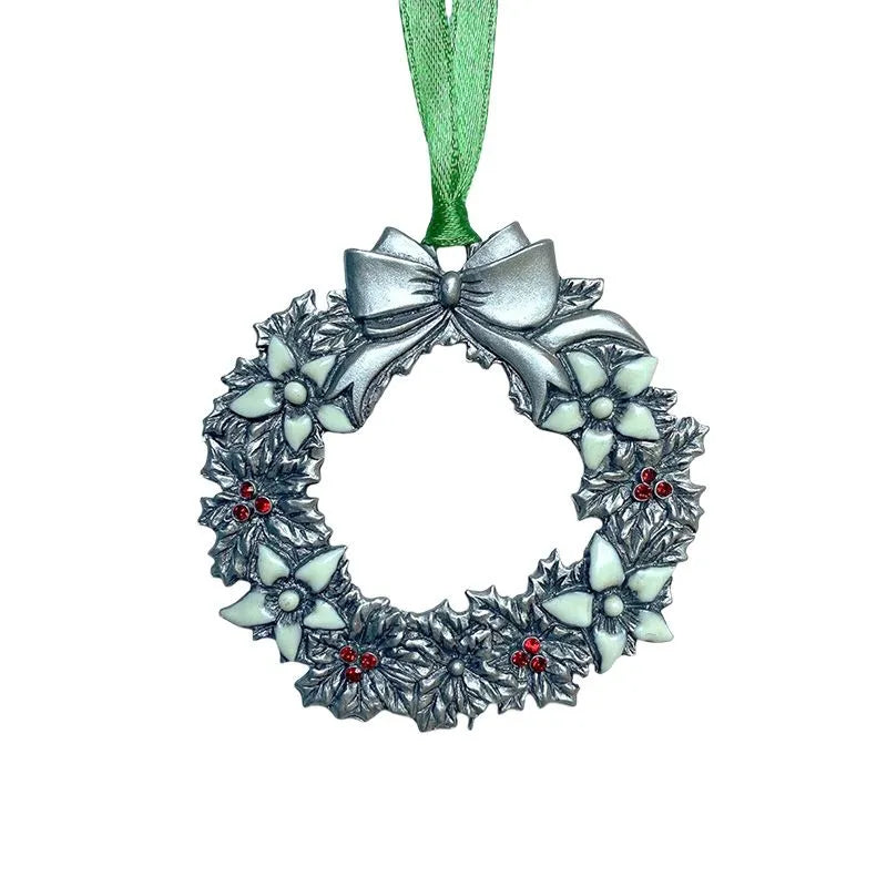 Our Ireland Wreath Shaped Tree Ornament beautifully captures the timeless tradition of the holiday wreath. Wreaths have long been a symbol of eternal life and renewal, often hung on doors to invite warmth and celebration during the winter season. The ornament's intricate design features stone accents reminiscent of festive berries, adding a charming sparkle that reflects the joy of the holidays. A thoughtful gift for loved ones, this ornament comes with a heartfelt message in the box, making it a meaningful present for the holidays. Whether as a personal keepsake or a gift for someone special, it adds a touch of tradition and festive charm to any holiday décor. Crafted from high-quality zinc and enamel, this Ireland wreath ornament is built to last. Its materials offer a combination of strength and luster, ensuring it will shine brightly among your holiday decorations. Measuring 2.75" W x 2.75" H, the decoration's compact size is perfect for hanging on a Christmas tree, while the included green ribbon provides an elegant and easy way to display it.